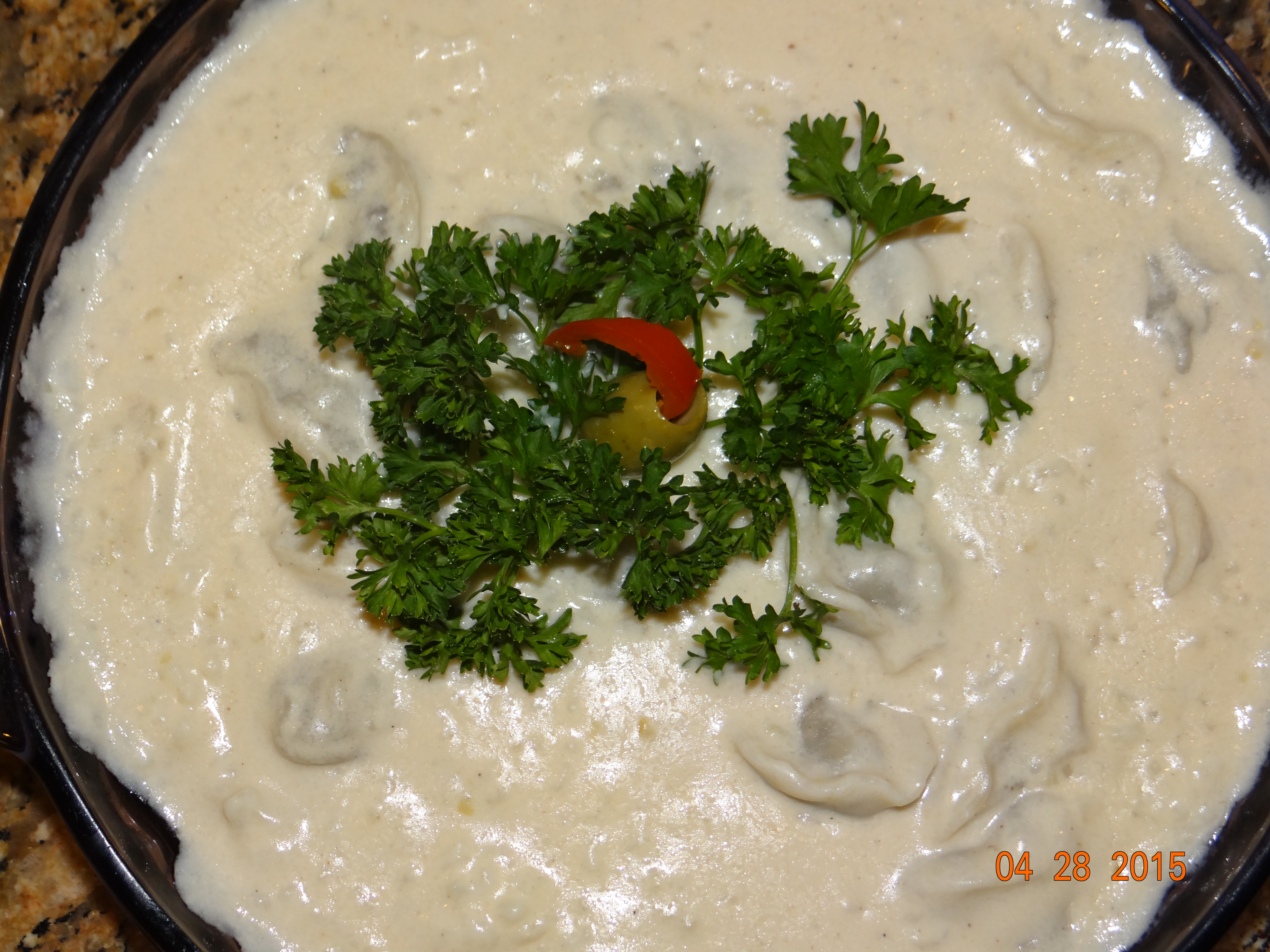 My dear friend invited me to spend a day in her kitchen learning and watching how she and her mom make a very a traditional Palestinian/Jordanian dish. That dish is called “Shish Barak”. It was such a unique experience! I think that dish says a lot about Palestinian people. They are really strong and patient! In my opinion, this dish should be very expensive and only to be cooked for people who you really care about. It requires a tremendous amount of work to be done properly. The result is so much worth it though specially for the people who like lamb. My friend used a very unique ingredient on that day that she got with her while traveling, it is the fermented yogurt. I put a picture for the fermented yogurt below since it looks so different from anything I have seen before. However, I will replace it in this recipe with regular milk and greek yogurt since I do not think this ingredient is available here. I will try also to describe how this dish tastes like, so it is close to chicken cream sauce mixed with tangy yogurt flavors and it has nice surprise of dumplings that are stuffed with ground lamb and parsley. The dumplings reminded me of the dim sums a lot and that was awesome! I think this is as close as possible 🙂