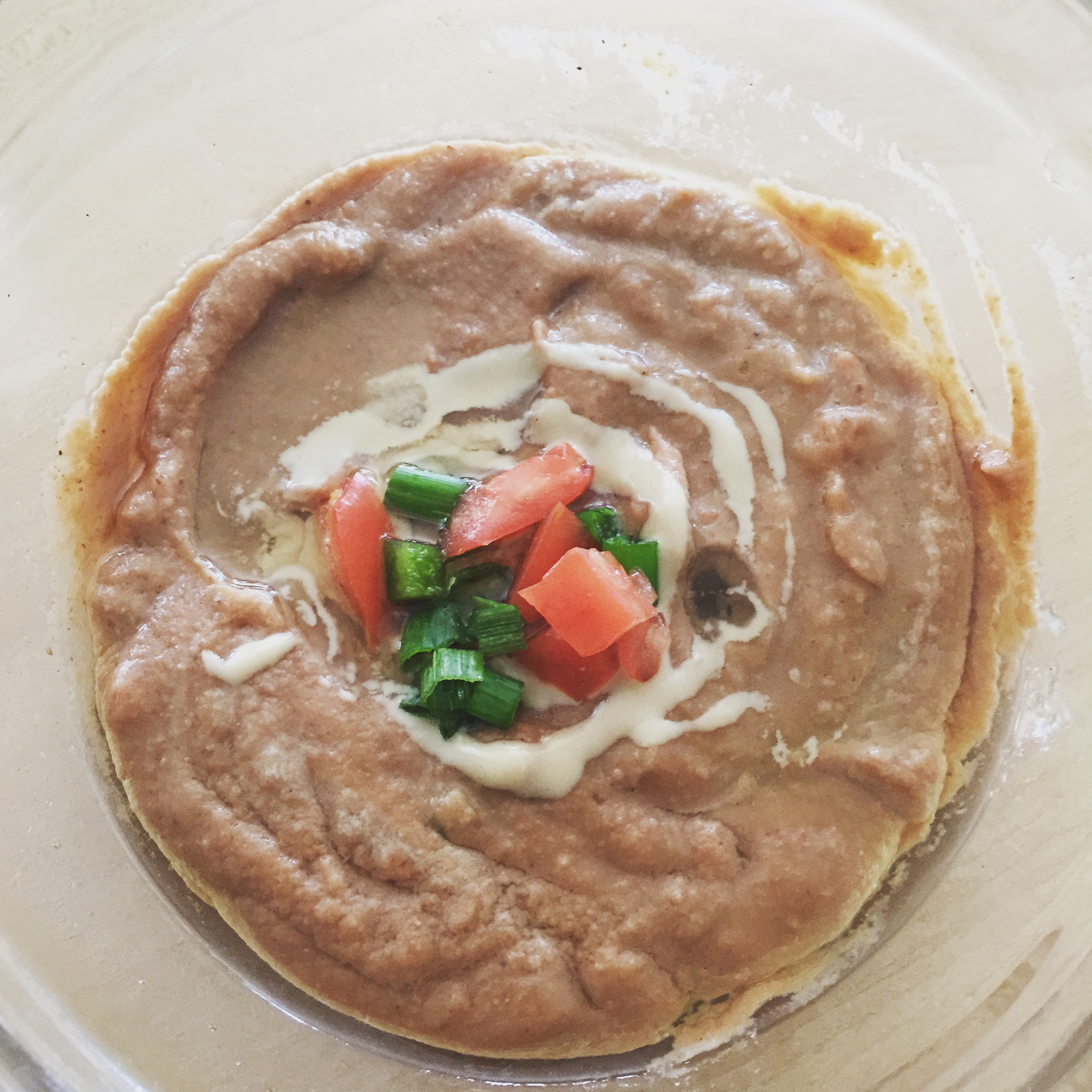On a plate, add the beans. Add the corn oil, lime juice, the tahini and stir.