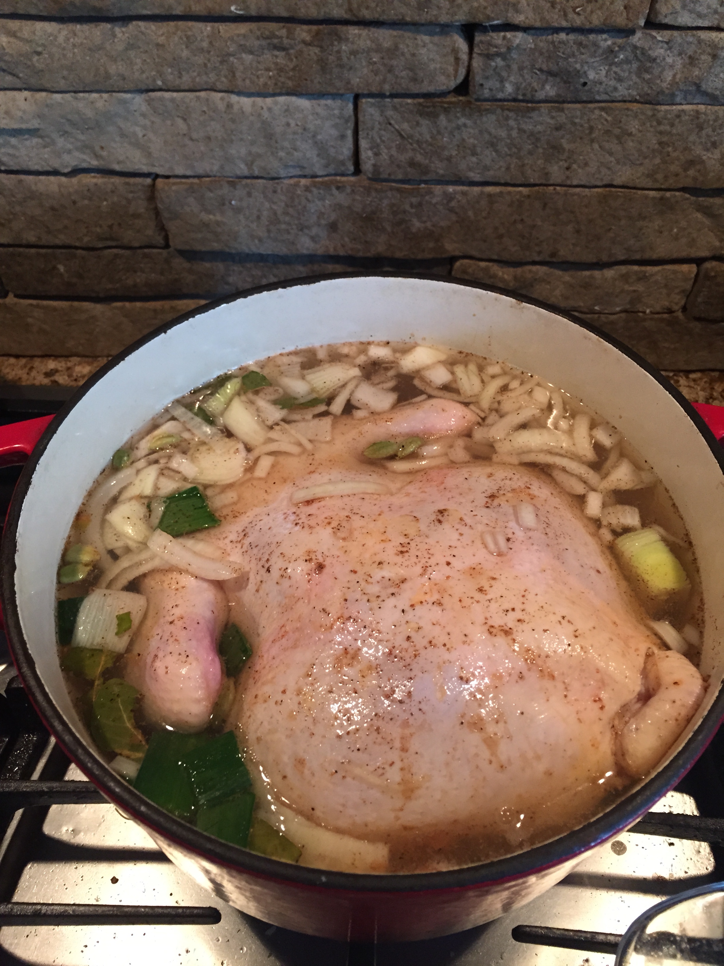 The Egyptian recipe of the chicken stock or soup usually has onions, bay leaves, tomatoes and something called “Mastic” or also known as “Arabic gum”. Mastic has a very special smell that makes the chicken soup different from anything else, it hypnotizes you to that soup right away! I made a little twist in the traditional Egyptian soup by adding leek. Boiling that leek along with the bay leaves, tomatoes, onions and mastic add tons of flavors to the broth. Hope you enjoy the recipe below!