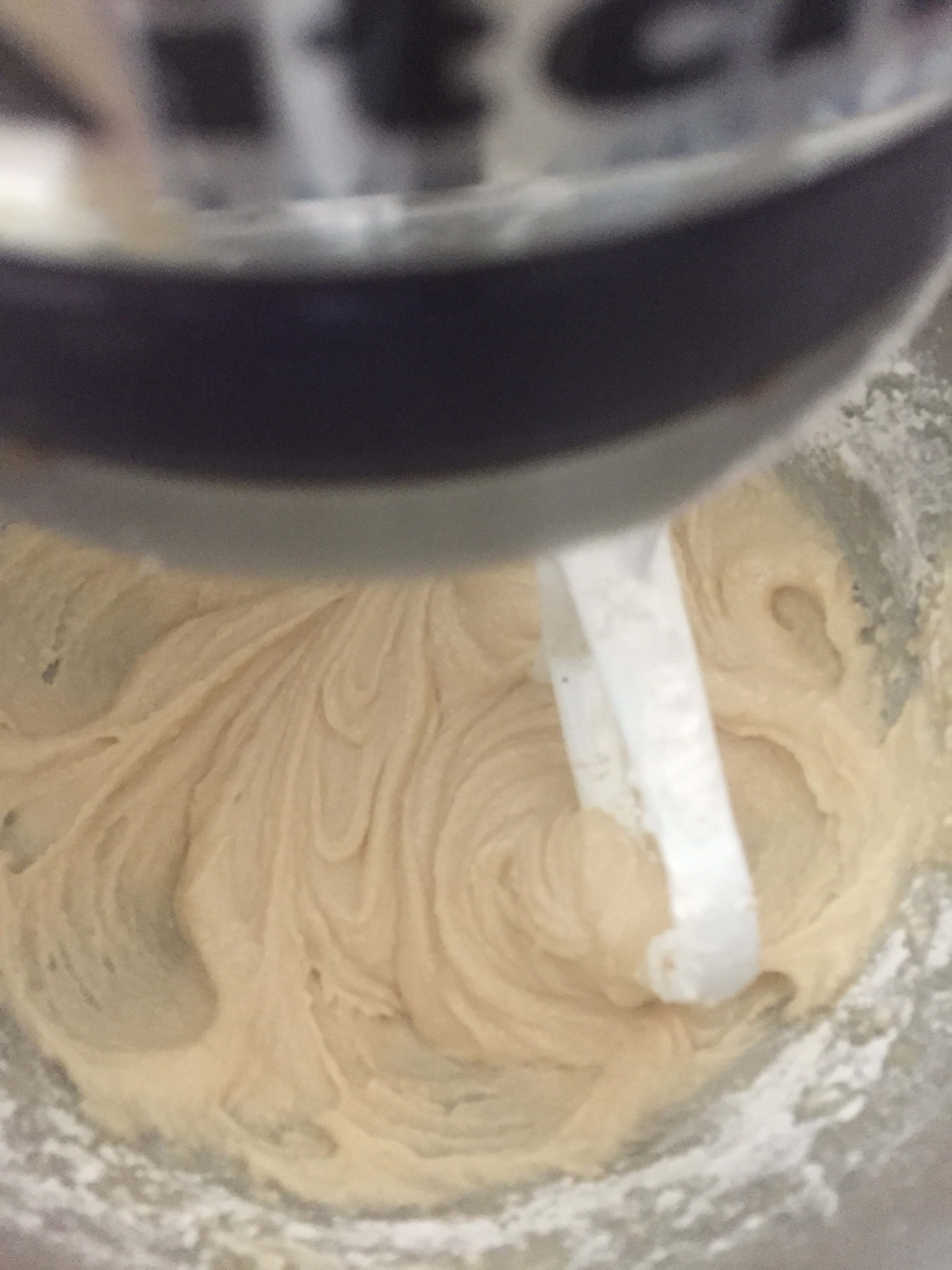 In your kitchen mixer, add the sugar, butter (not fully melted and at room temp.) and vanilla, mix until they are fluffy and the color is lighter.