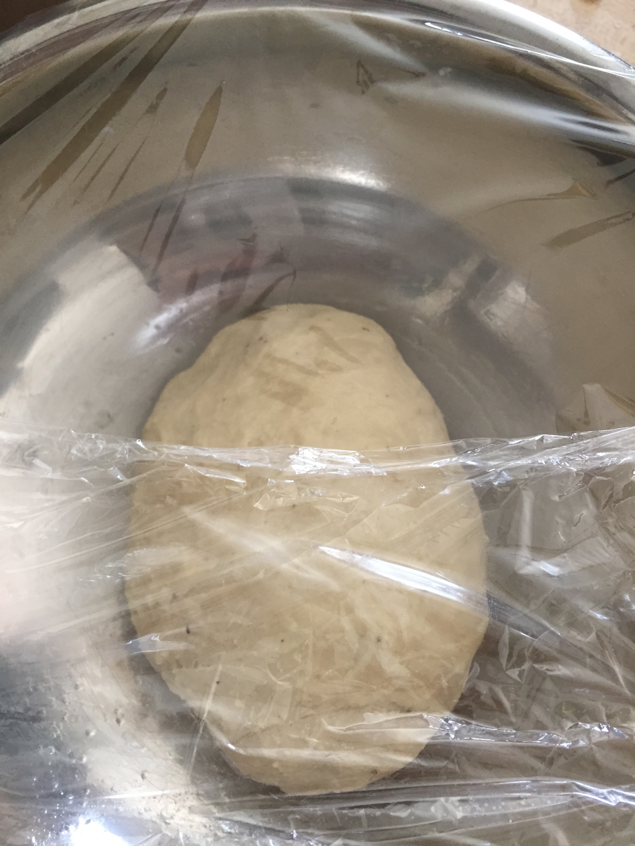 In a well buttered bowl, place the dough and cover with plastic wrap. The dough should be really soft and elastic.