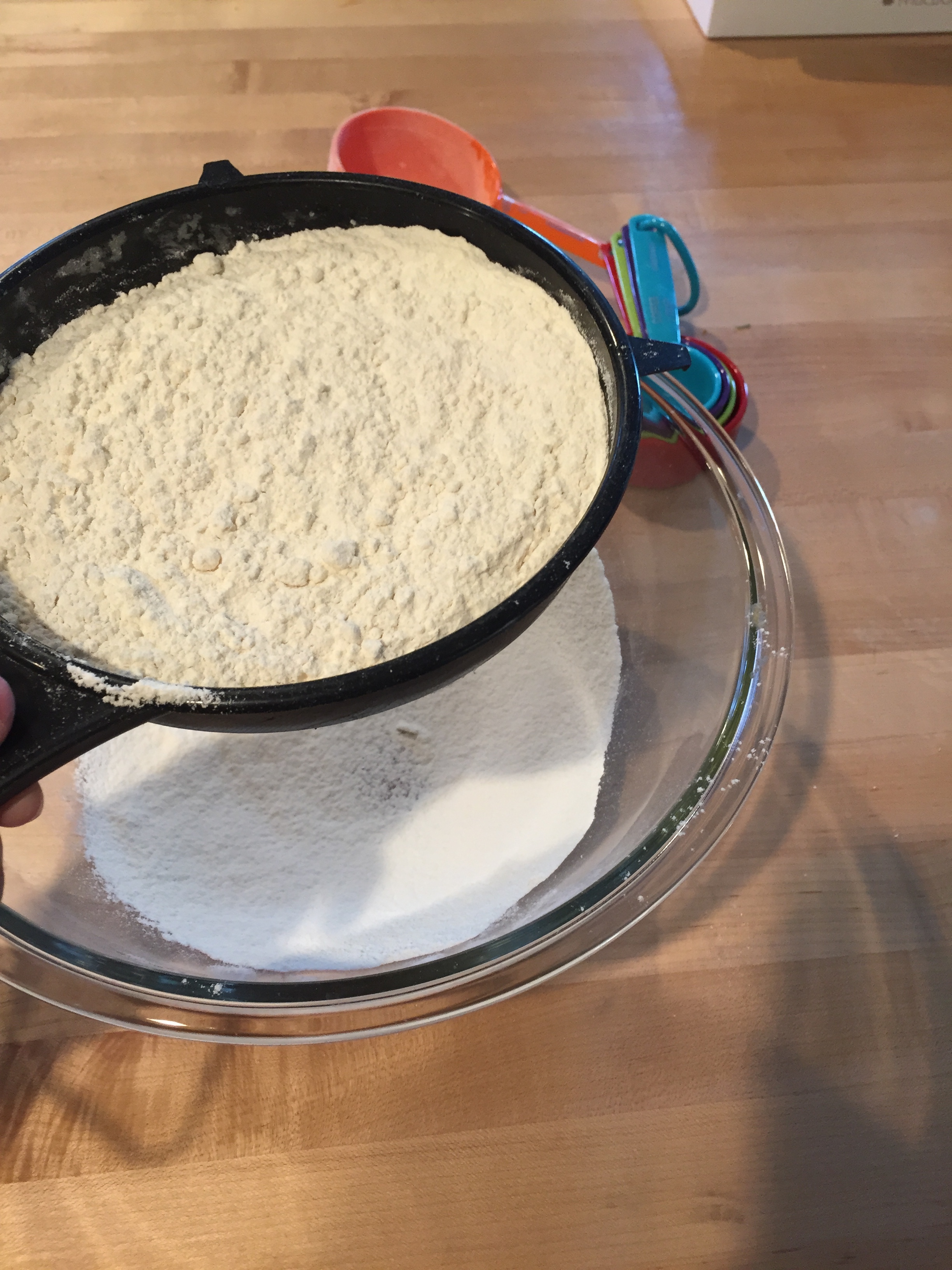 In a large bowl, sift the flour.