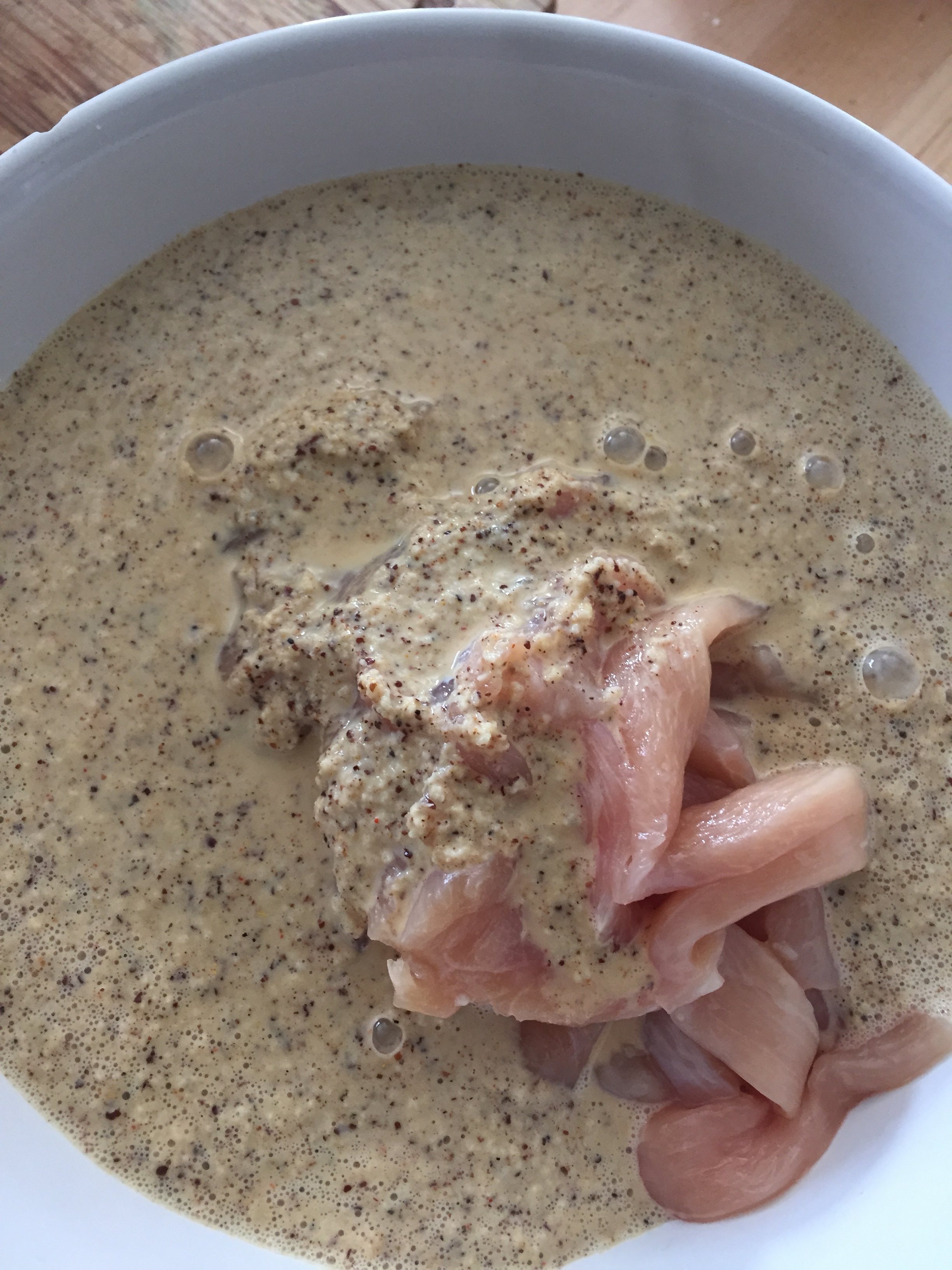 Pour the marinating sauce on the chicken.