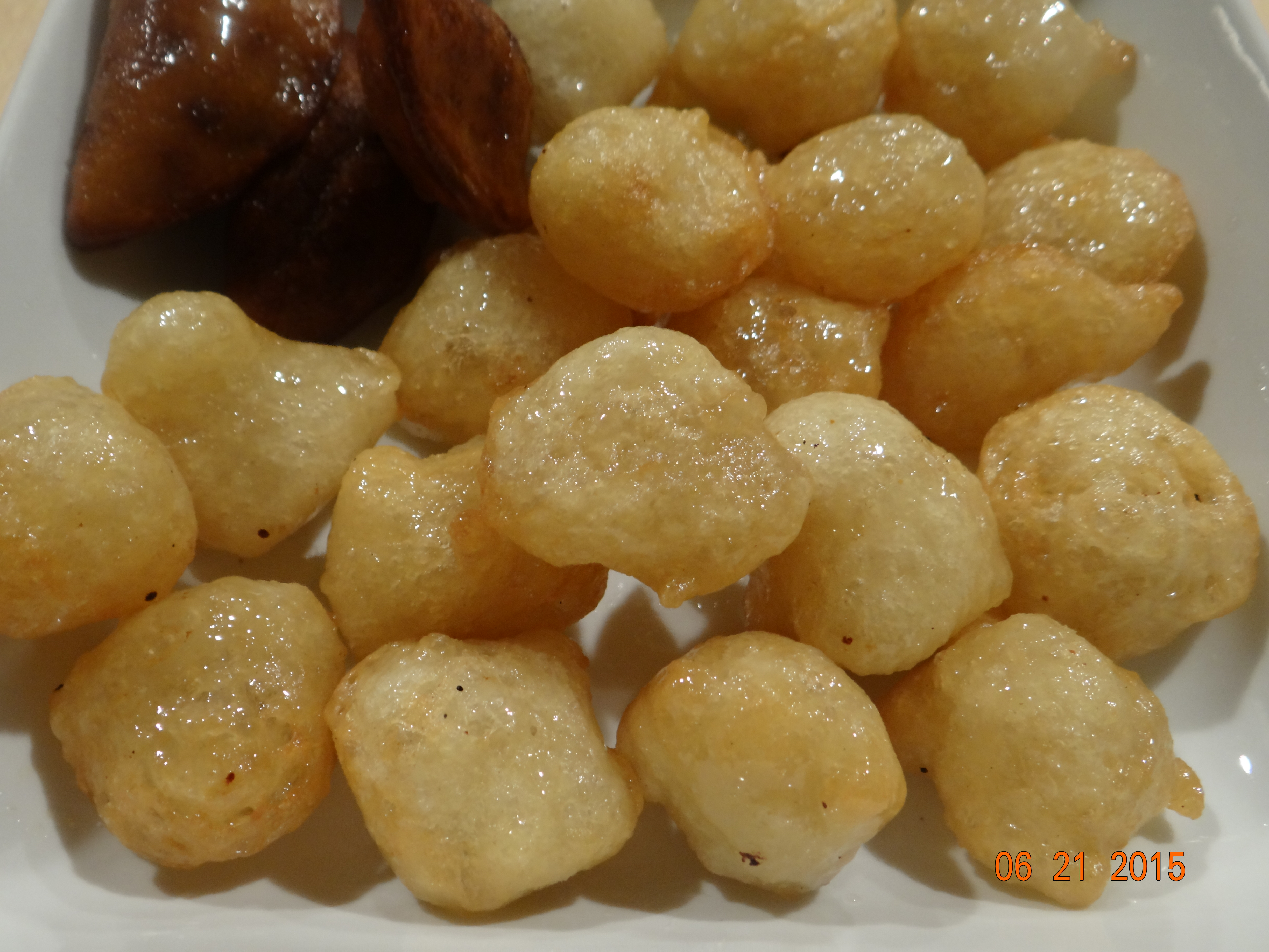 Remove from syrup after 3 or 4 seconds and place them in the serving plate with Qatayef for best dessert night ever.