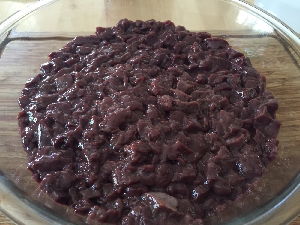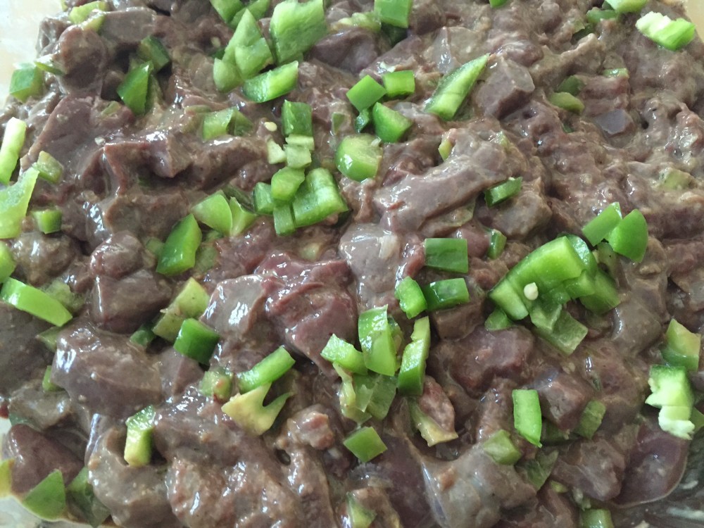 Dice the beef liver into small pieces. This step could be hard if the liver is not half frozen. So I advise you to freeze it for 30 minutes first.