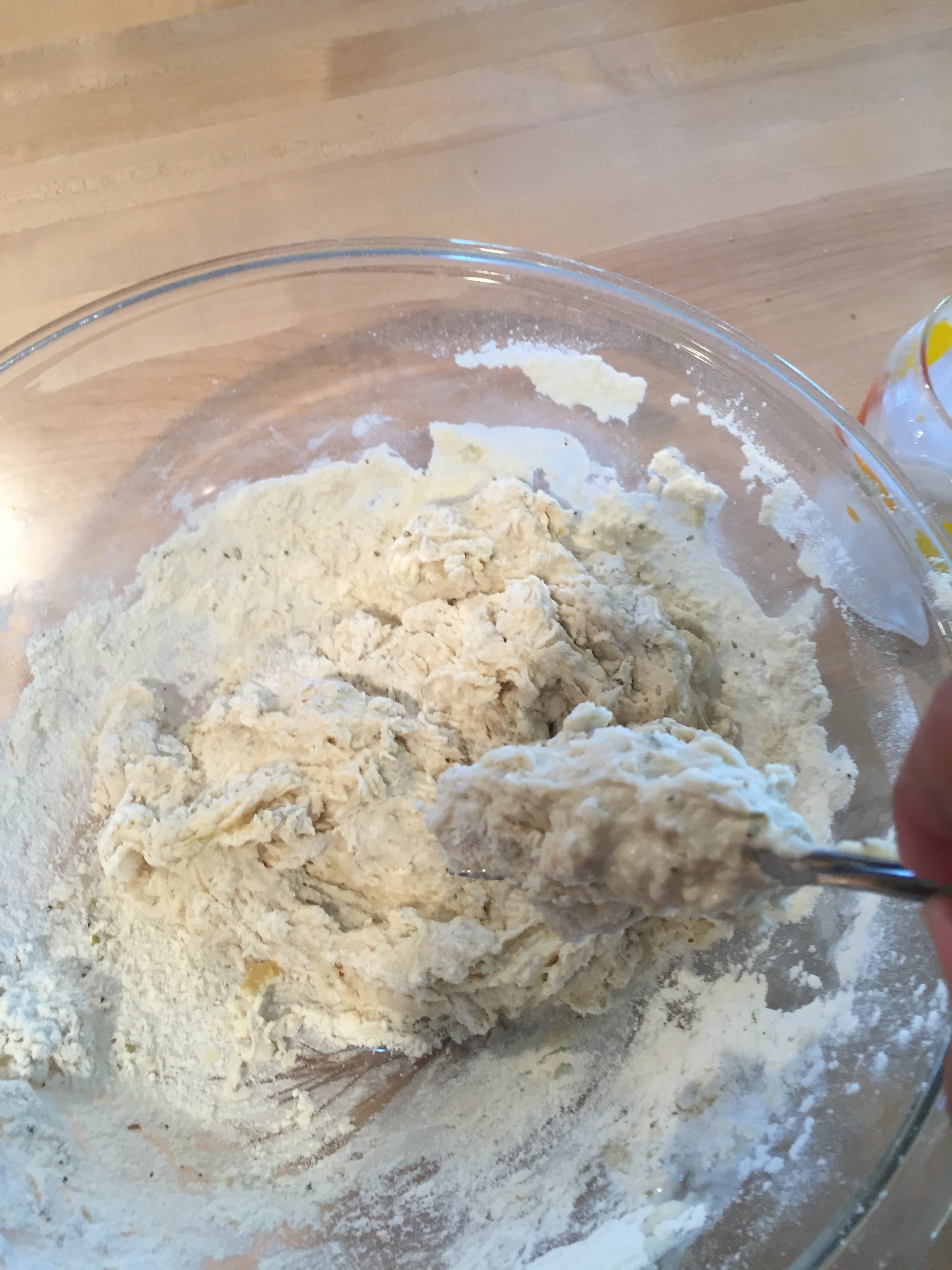 When dough has pulled together, put it onto lightly floured surface and knead for about 6 minutes until the dough is nice and smooth. Form it in a ball shape.