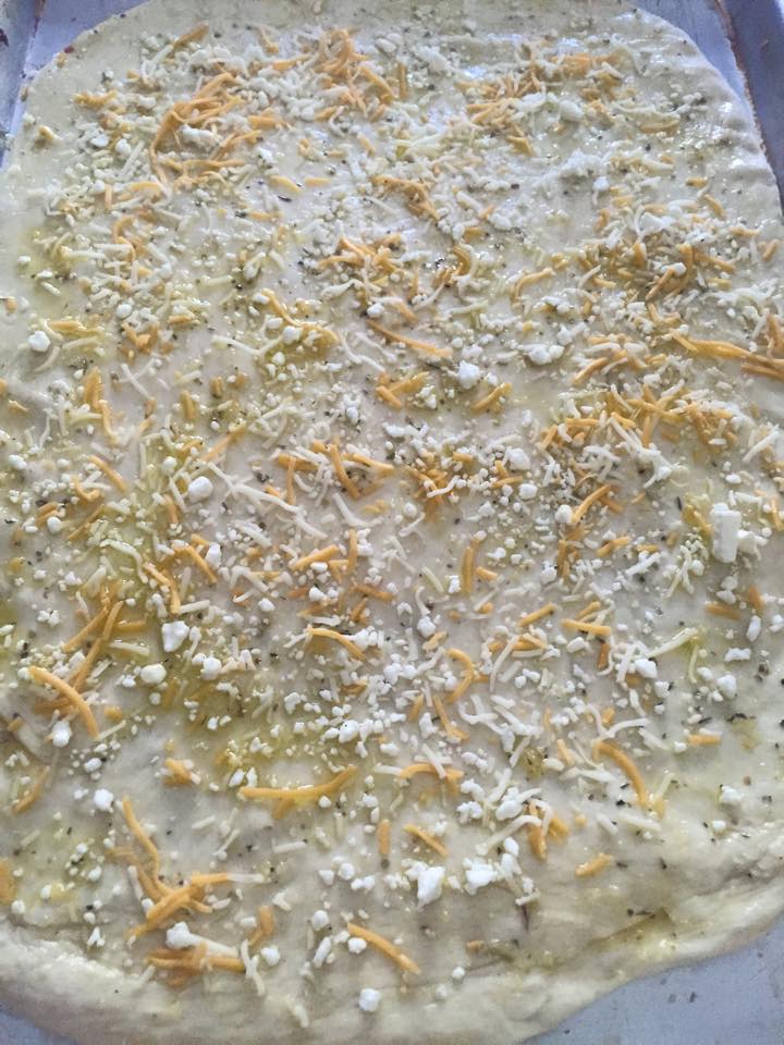Place on greased baking sheet and pat dough into 1/2-inch thick rectangle.