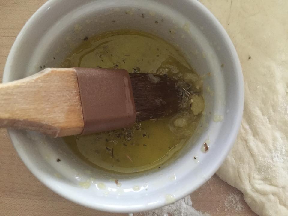 In a separate small bowl, mix 2 tbsp of olive oil with the minced garlic and the Italian seasoning. Set aside.