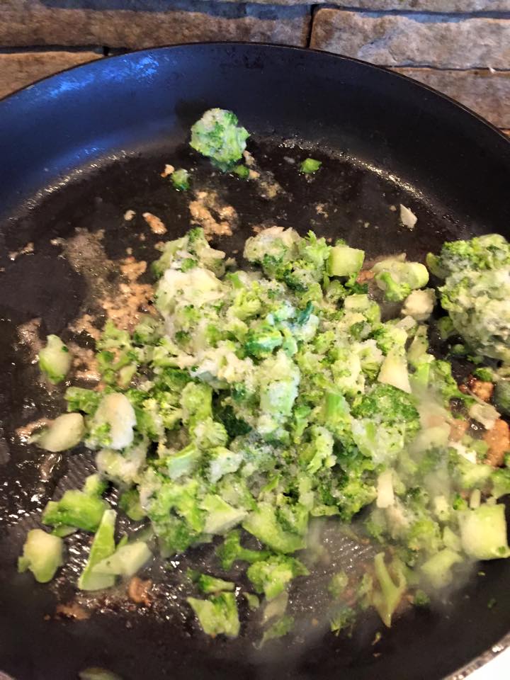 Use the same pan and add the broccoli on medium heat. Sprinkle some salt and pepper and stir it for a minute.
