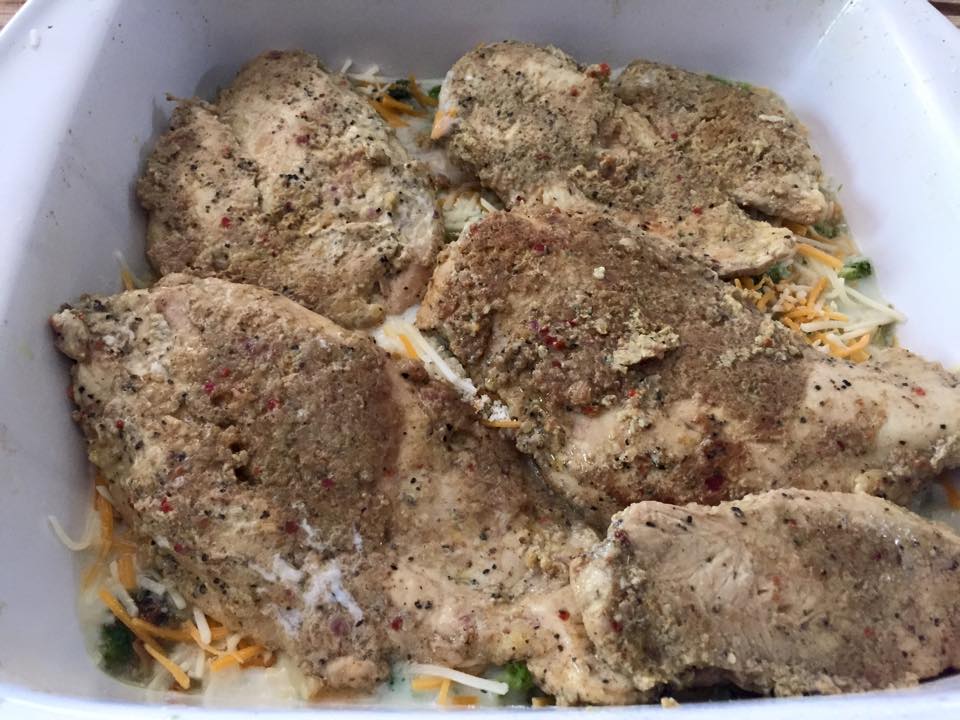 Pour this mix on the chicken. Place in the fridge for at least 30 mins to marinate.