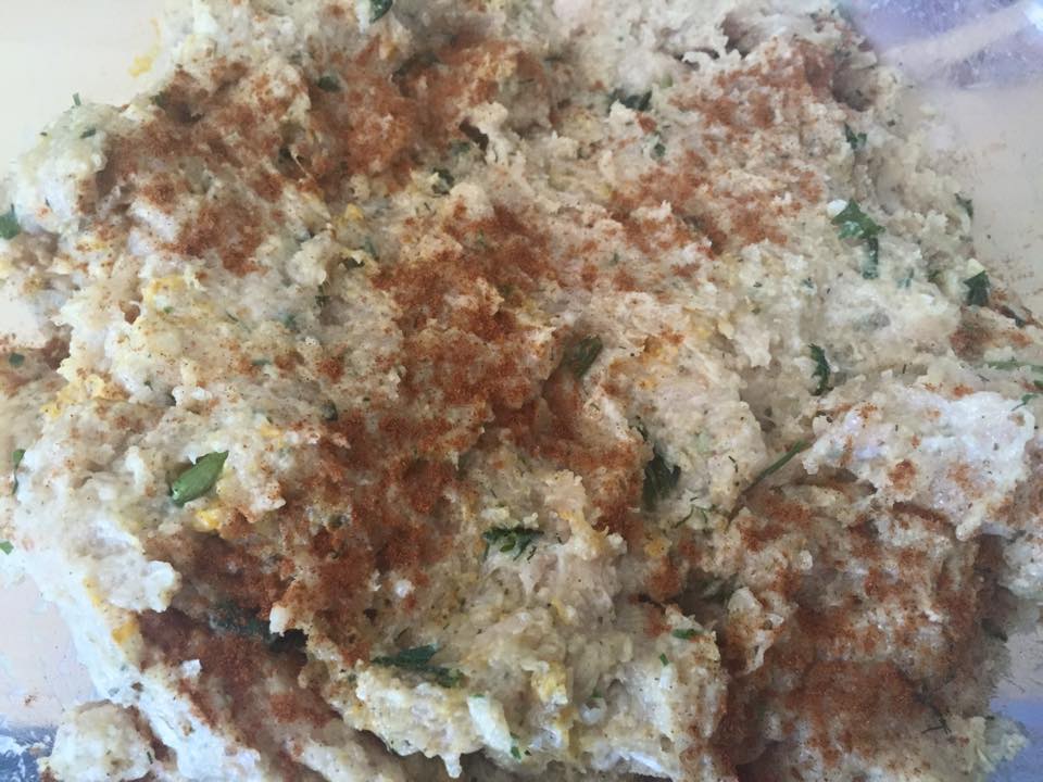 Mix all the ingredients above except for the olive oil & the breadcrumbs.